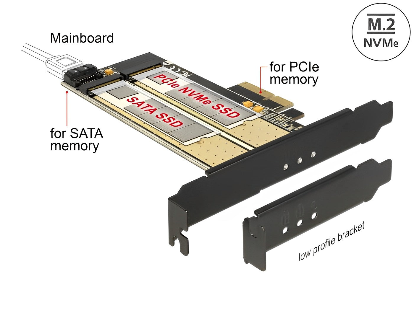 Delock PCI Express x4 Card > 1 x internal M.2 Key B + 1 x internal NVMe M.2 Key M - Low Profile Form Factor