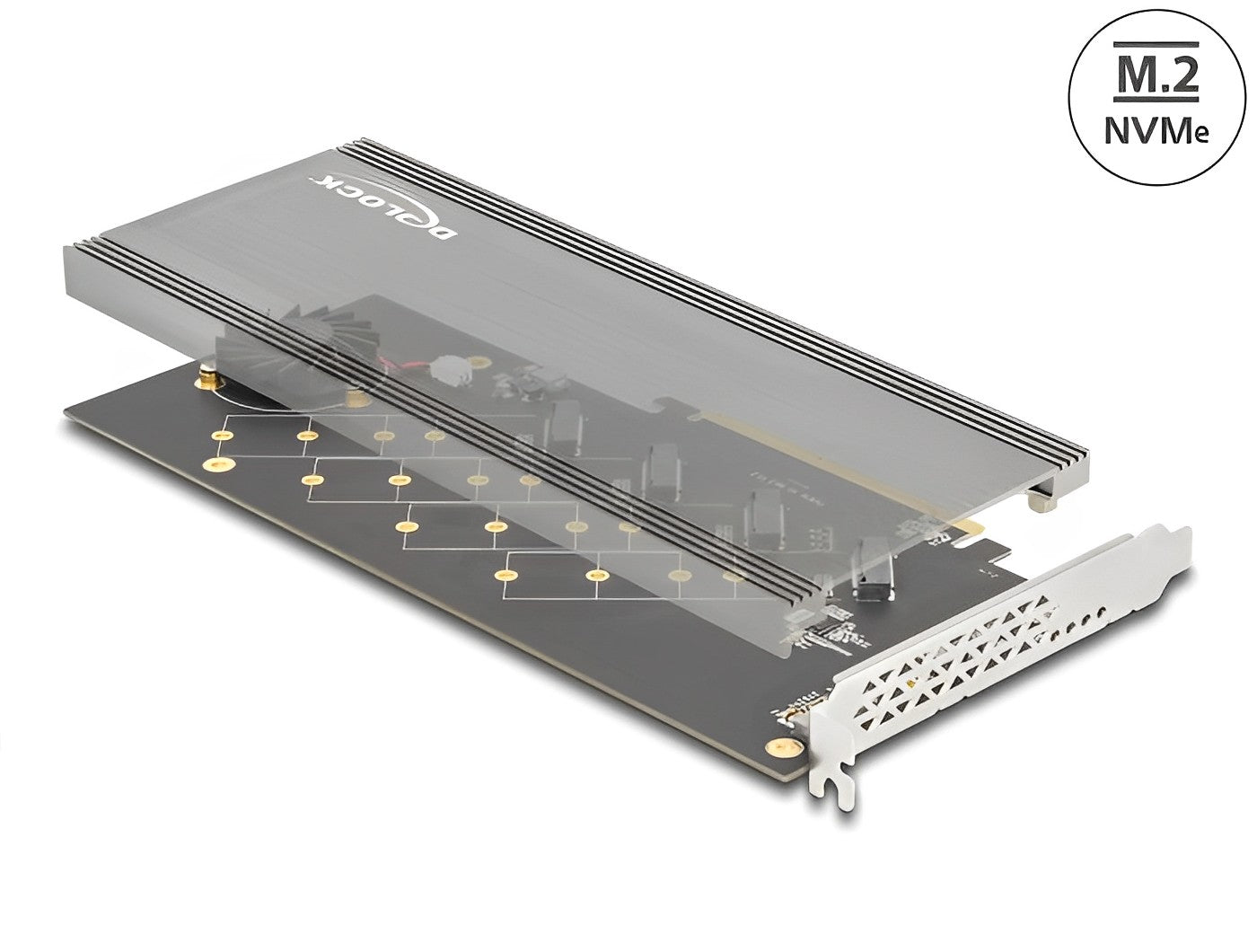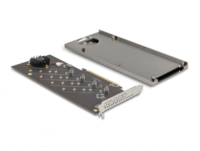 Delock PCI Express 4.0 x16 Card to 4 x internal NVMe M.2 Key M with Heat Sink and Fan - Bifurcation