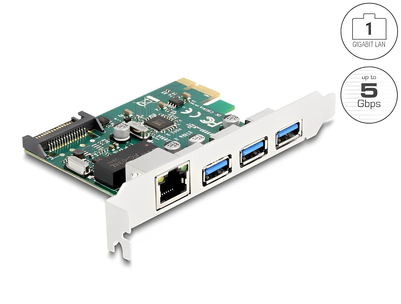 Delock PCI Express x1 Card to 3 x USB 5 Gbps Type-A female + 1 x Gigabit LAN