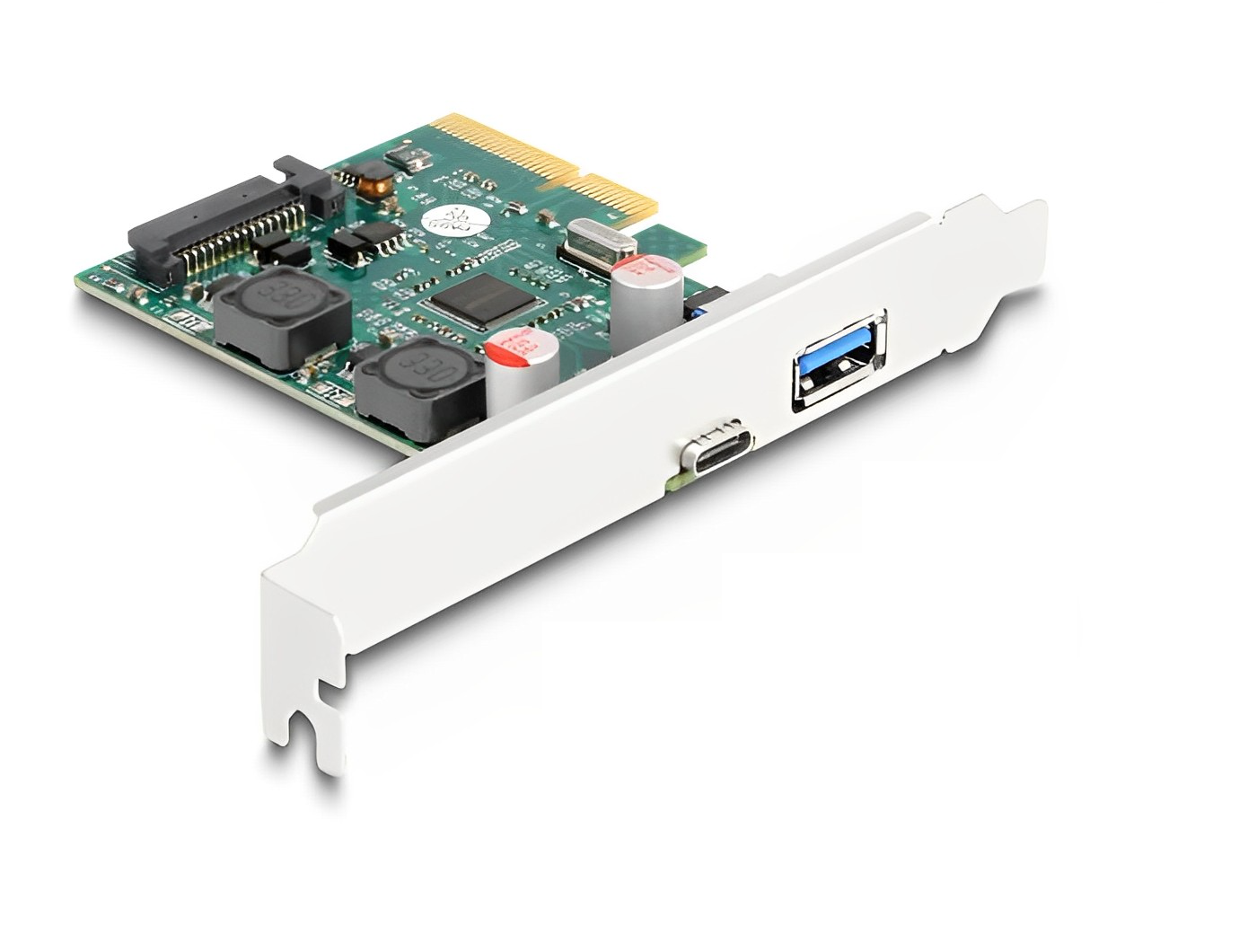 Delock PCI Express x4 Card to 1 x external USB 10 Gbps Type-C™ female + 1 x external USB 10 Gbps Type-A female - Low Profile Form Factor
