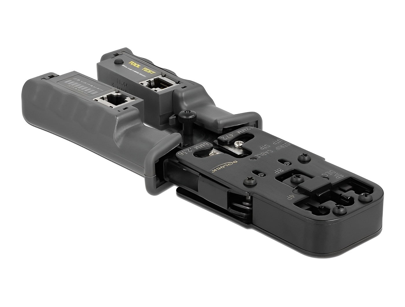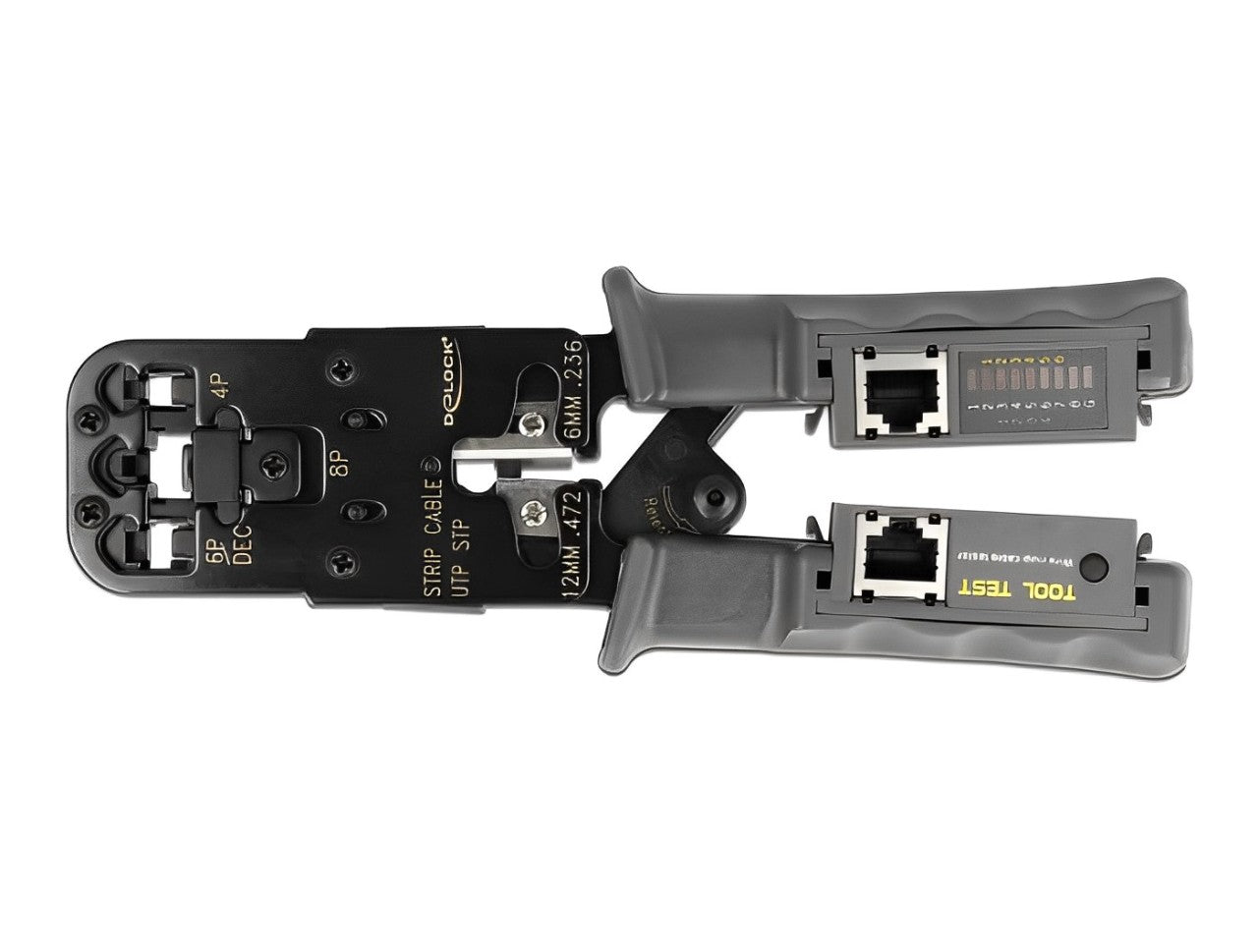 Delock Crimp tool with stripper and network tester for 8P (RJ45), 6P (RJ12/11), 6P DEC or 4P (RJ10) plugs