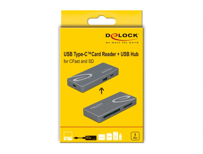 Delock USB Type-C™ Card Reader for CFast and SD memory cards + USB Hub with Type-A and USB Type-C™ port