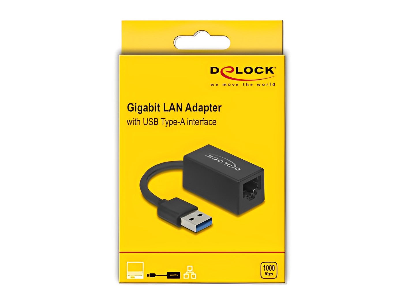 מתאם רשת Delock מחיבור USB-A זכר לחיבור LAN במהירות 1 גיגה-ביט צ'יפ Realtek