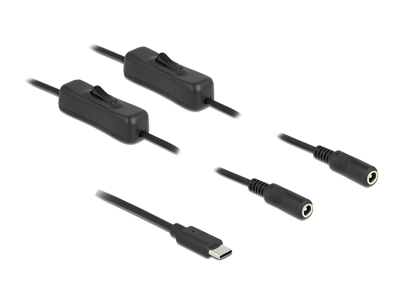 כבל חשמל Delock 5V מחיבור USB-C זכר ל-2 חיבורים DC 5.5x2.1 נקבה עם מפסקים | אורך 1 מטר