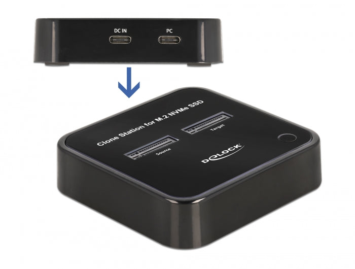 תחנת עגינה Delock USB 10Gbps M.2 עם פונקציית שכפול עבור 2 כוננים M.2 NVMe | חיבור למחשב USB-C