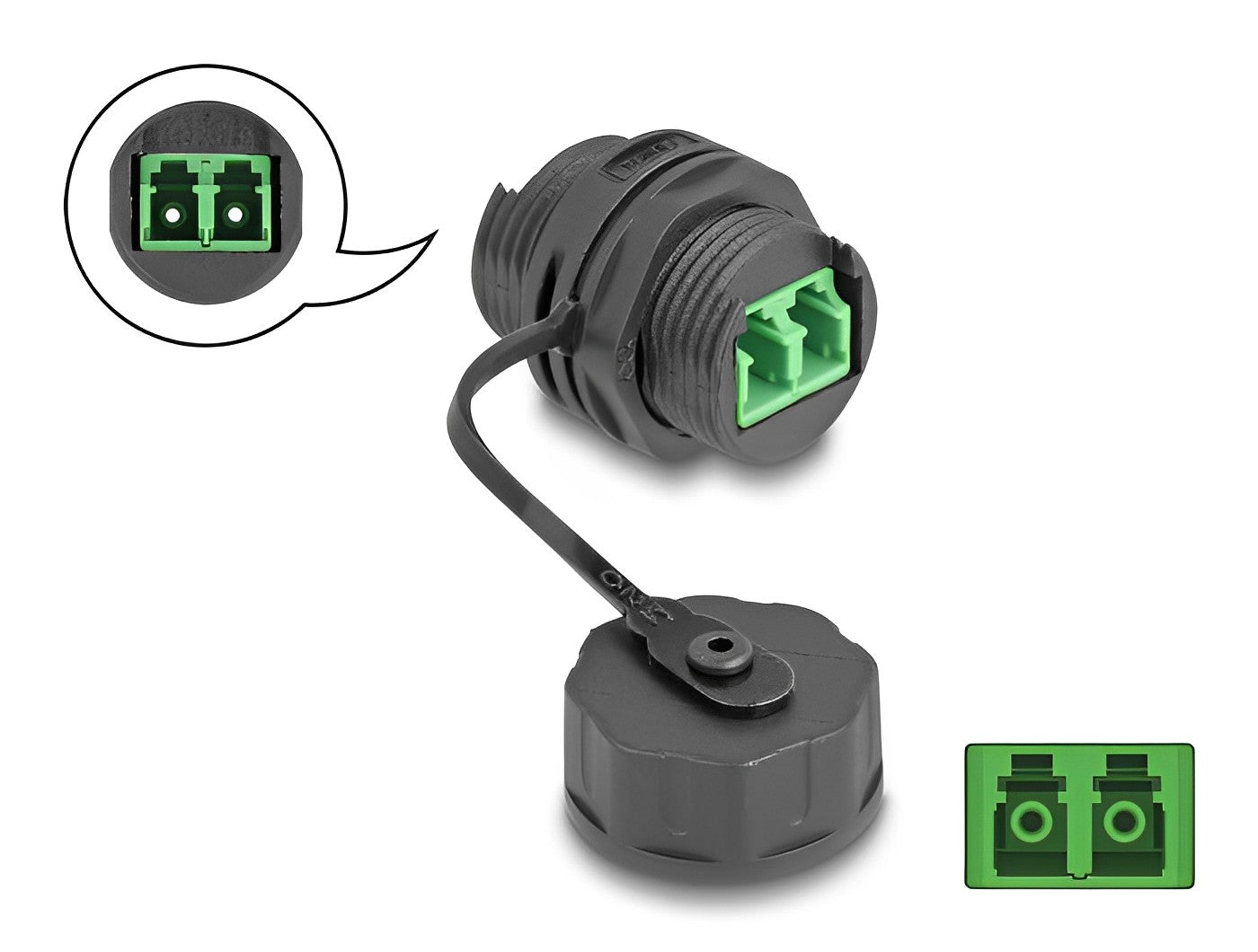 מופה Delock לסיבים אופטיים סינגל-מוד LC OS2 דופלקס נ/נ | עם מכסה IP68 | להתקנה בקדח עגול 20 מ"מ