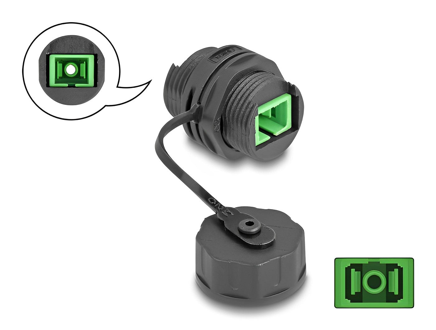 מופה Delock לסיבים אופטיים סינגל-מוד SC OS2 סימפלקס נ/נ | עם מכסה IP68 | להתקנה בקדח עגול 20 מ"מ