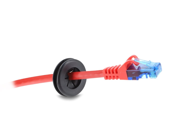 תושבות כבלים עגולות מבית DELOCK גרמניה מבטיחות ניתוב כבלים מסודר ומאובטח דרך דפנות מארזים, ארונות חשמל, רהיטים או התקנים.