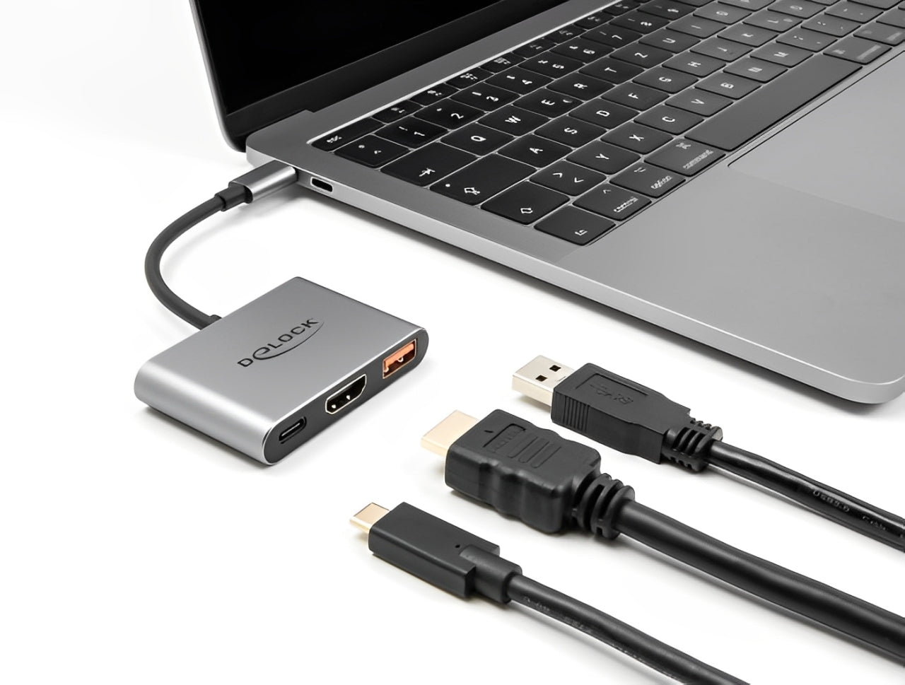 מתאם תצוגה Delock USB-C PD 90Watt עם יציאת USB-A 10Gbps וחיבור למסך HDMI 4K @ 30Hz